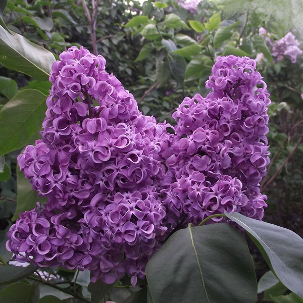 Раскидистый кустарник. Высота 3 м. Побеги густо разветвленные, вверх направленные. Бутоны крупные темно-лиловые, цветки очень крупные, до 3,8 см, махровые. Соцветия состоят из одной, двух пар крупных (до 25 см длиной) пирамидальных метелок. Цветение обильное в мае.