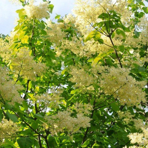 Многоствольный кустарник или дерево до 10 м, реже 12—15 м высотой. Кора тёмно-серая или бурая, с хорошо заметными белыми поперечными чечевичками. Молодые побеги красно-бурые. Листья 5—11 см длиной, зелёные, эллипсовидно-сердцевидные сходны с листьями сирени обыкновенной. Соцветия крупные широкометельчатые до 20—25 см длиной и до 20 см в диаметре. Цветки белые или слегка кремовые, мелкие 5—6 мм в диаметре, с сильным запахом. Живёт до 90—100 лет. Растение получило народное название «трескун» за то, что сырые дрова горят с сильным треском, разбрасывая искры и угли на несколько метров.